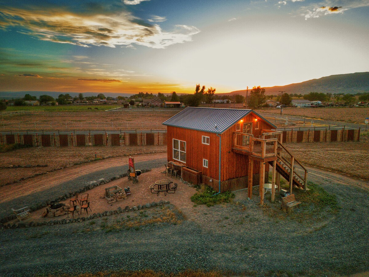 This luxurious, 2-loft tiny home sports stunning views of magnificent Montrose, Colorado with a brand new deck! Whether you are a remote worker or a one-night-stay guest, this paradise offers a secluded, serene feel while being minutes away from amenities you might want. Montrose is a perfect central hub for national parks, hiking, skiing, and other outdoor activities within a 1.5-hour drive. Or kick back and relax under the stars and in the morning, collect farm-fresh eggs for your breakfast!