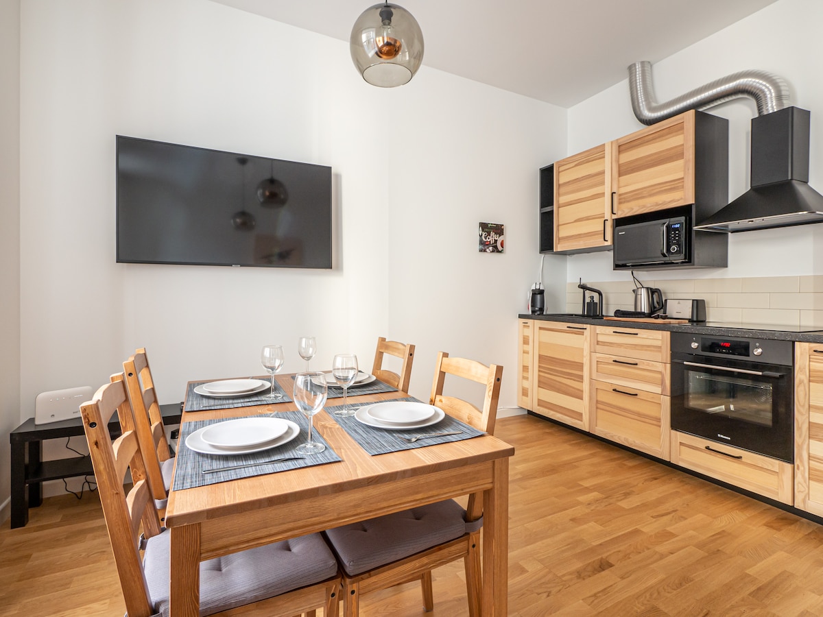 Kick back and relax in this calm, neat space in the city heart, next to Art Nouveau gems and surrounded with parks, top restaurants, bars of any kind and shopping centers - you will get all needed for vacation or staying for business. Apartments were built in April 2023 with high quality materials and wise design. Owner constantly invests her own soul in highest level of clearness, comfort and safety. Fully contactless checkin & free parking in nearest commercial parking will be a small bonus.