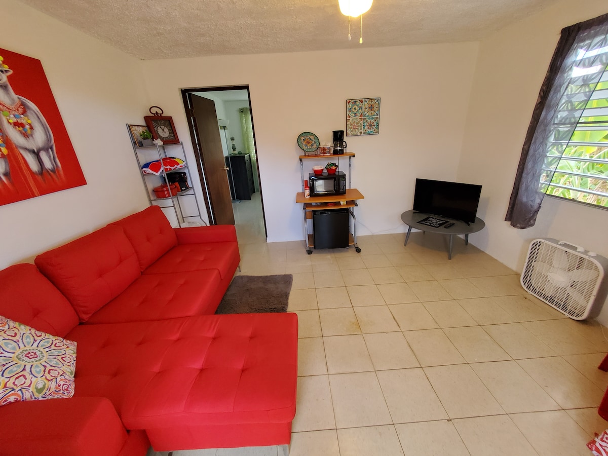 After a day of adventuring, this is the perfect budget friendly place to get a good and comfortable night’s rest. No annoying/noisy neighbors to deal with. A short 10 minutes drive to Rincon’s downtown and renowned beaches. This one flight down the stairs back patio level room has a private entrance/private bathroom. Equipped with 2 queen beds, AC, and 2 ceiling fans. A mini fridge, microwave, and a coffee maker/essentials. WiFi, a Roku Smart TV with additional local air channels.