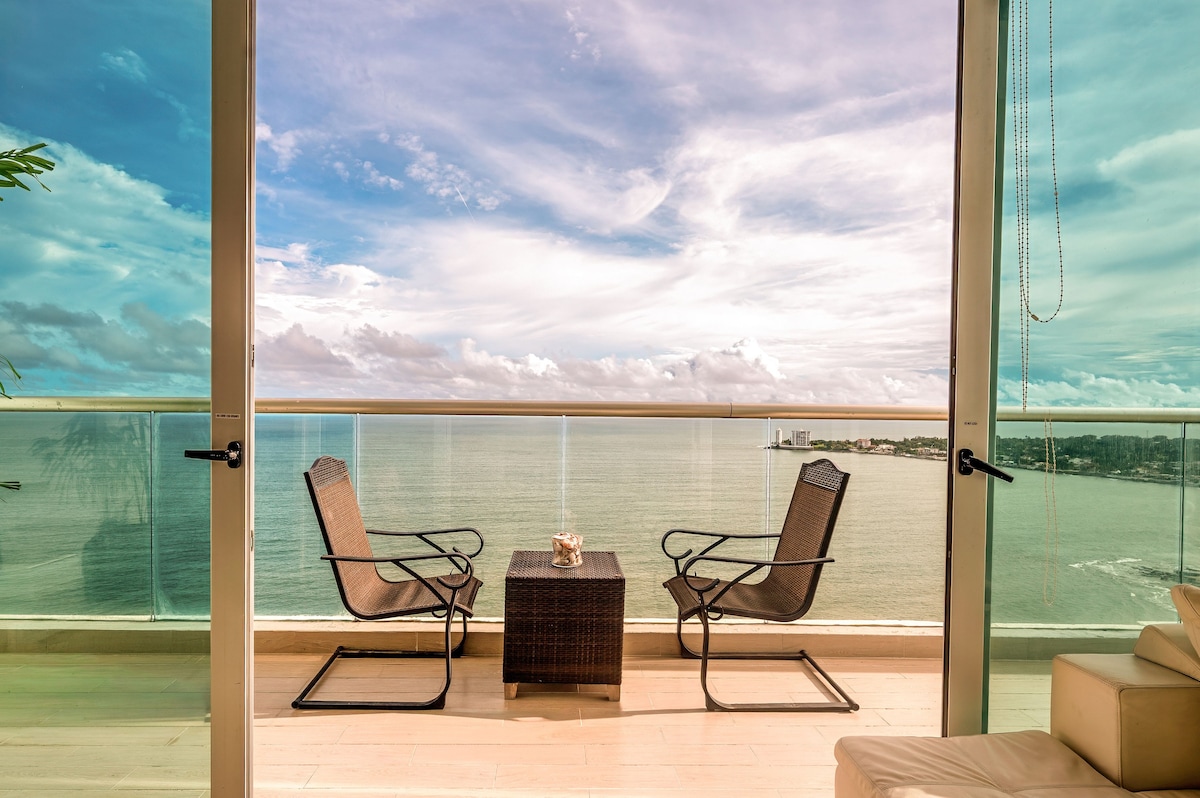 Wake up to the ocean in this beautiful beachfront loft in Farallón, located in the exclusive Miramar Loft next to the Decameron Hotel. Relax on the balcony with sea views, enjoy the pool, and walk to the beach with private cabanas on the sand. The apartment offers 2 bedrooms, a full kitchen, A/C throughout, and fast Wi-Fi. Just 2 hours from Panama City. Book now and live the beach experience you deserve!
