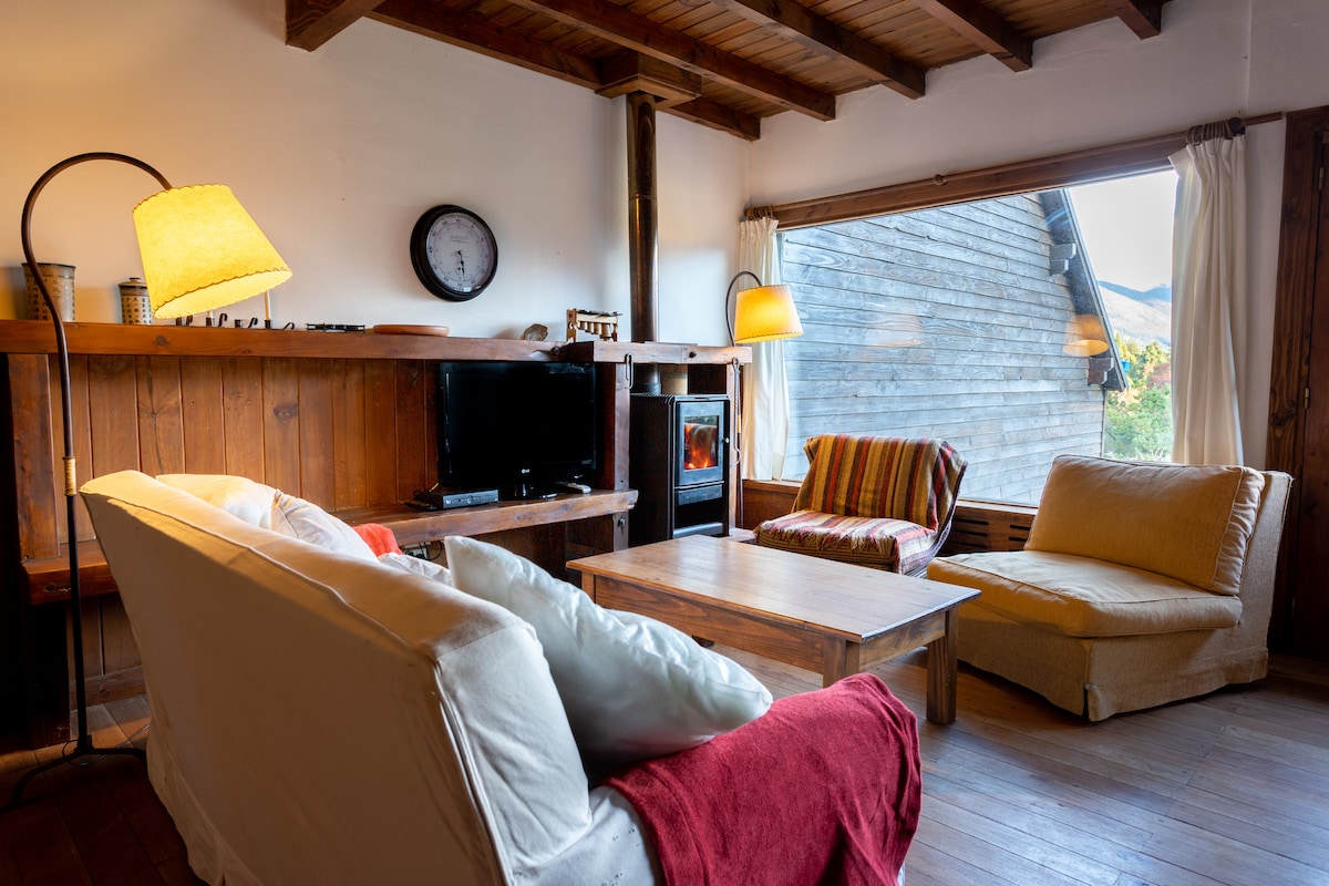 Descubre la armonía del bosque en esta luminosa y amplia casa para 5 personas. Su construcción de troncos y piedras te hará sentir en conexión plena con la naturaleza. En el living podrás distenderte, ya que posee un piano, hamaca paraguaya, televisión y un hogar para disfrutar de noches acogedoras. En el terreno, encontrarás un chulengo y una mesa para comer al aire libre. Ubicada a 5 km de Cervecería Patagonia y Colonia Suiza podrás disfrutar de paisajes imponentes de Circuito Chico.
