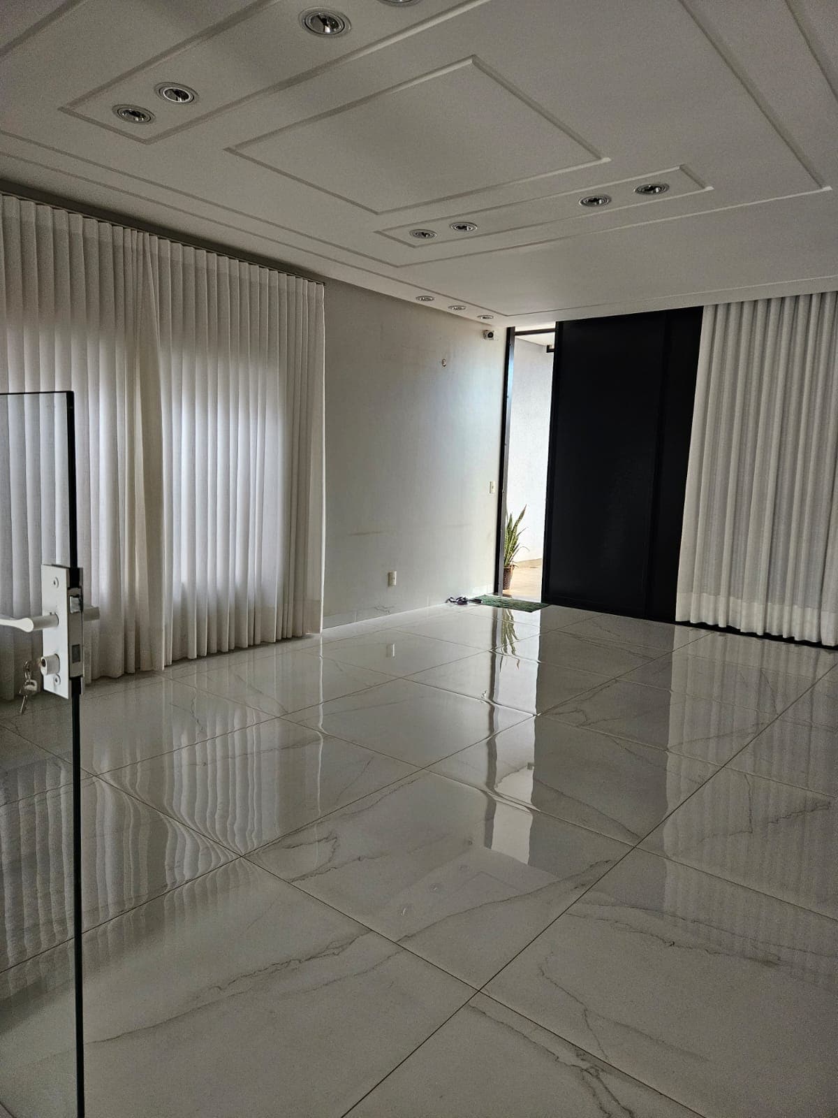 Casa vazia para tecnoshow. 2 vagas de garagem. 4 quartos sendo 3 suítes, 1 com banheira. Não tem camas, nem ar condicionado, não tem mais cortinas. Não tem fogão. Móveis disponíveis somente guarda roupas embutidos, armarios de cozinha e banheiro. Não oferecemos cama, toalhas, roupa de cama nem papel higiênico. Casa vazia.