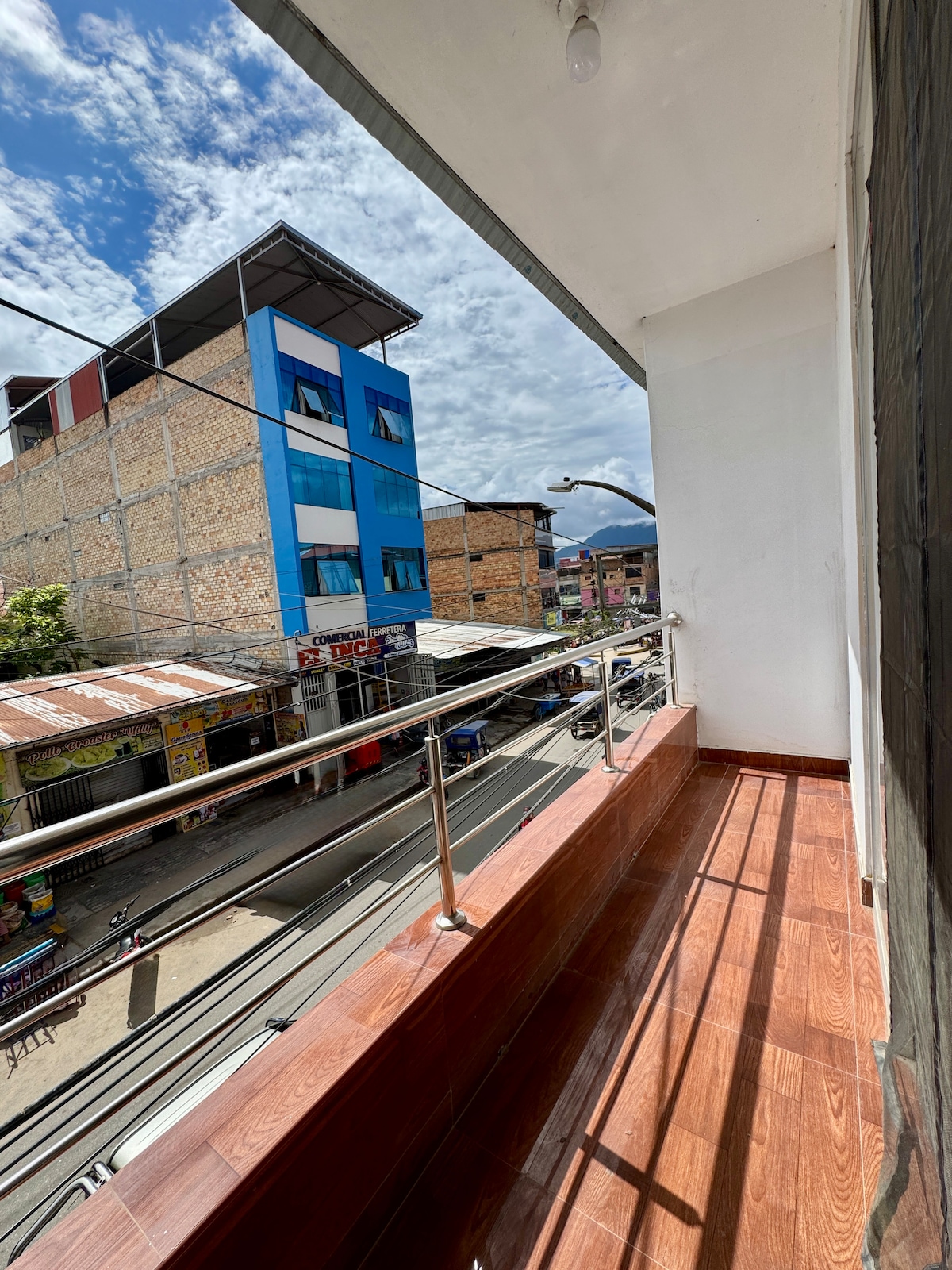Disfruta de un mini departamento nuevo y acogedor, a solo pasos de la plaza. Cuenta con WiFi de alta velocidad, gran espacio de trabajo, cocina equipada, TV de 55”, baño privado y refrigeradora grande. Perfecto para parejas o viajeros que buscan comodidad, privacidad y un punto ideal para explorar las cataratas y la naturaleza del Alto Mayo.