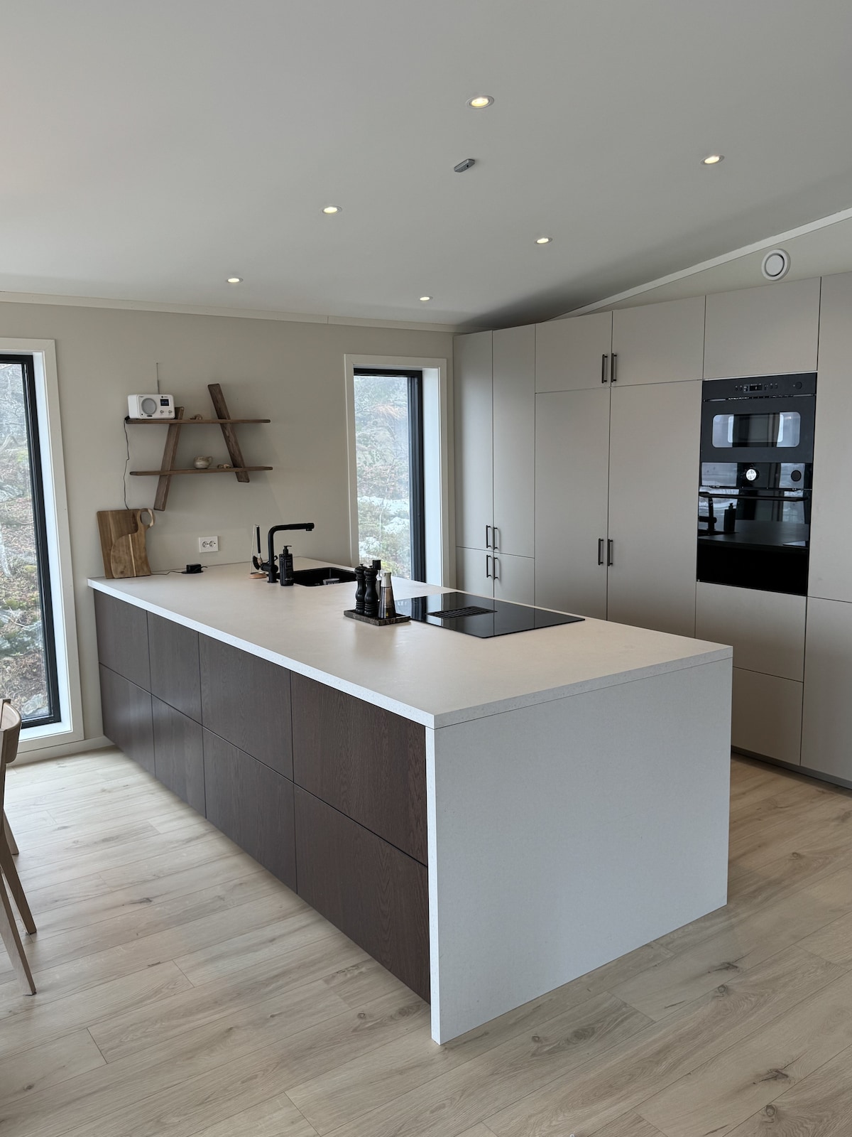 Kick back and relax in this calm, stylish space. Enjoy a morning swim before breakfast on the terrace of the Vista house overlooking the beautiful little town of Holmesund. The Vista house is made with a natural wood structure, Italian tiled bathrooms and beautiful interiors. There is plenty of space to relax on the two terraces and the house opens up completely to the outdoors with big folding doors on each side of the living room and kitchen. This is the perfect spot for a relaxing vacation!