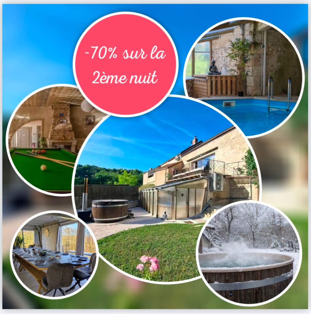 ✨Envie de vivre un Moment Magique en Amoureux ou entre Amis ?❤️ Offrez-vous une parenthèse hors du temps dans un Grand Spa privatif à l’ambiance romantique sous le Ciel Étoilé, véritable invitation au voyage sous les tropiques🌴 💦Détendez-vous dans l'Espace Bien-Être exceptionnel avec • Spa XXL • Sauna • Smart TV 🌿Situé à l’intérieur avec vue sur le jardin, profitez d’un séjour inoubliable été comme hiver 🏡Le Lodge & Sweety❤️Spa, magnifique maison en pierres nichée au calme de la campagne
