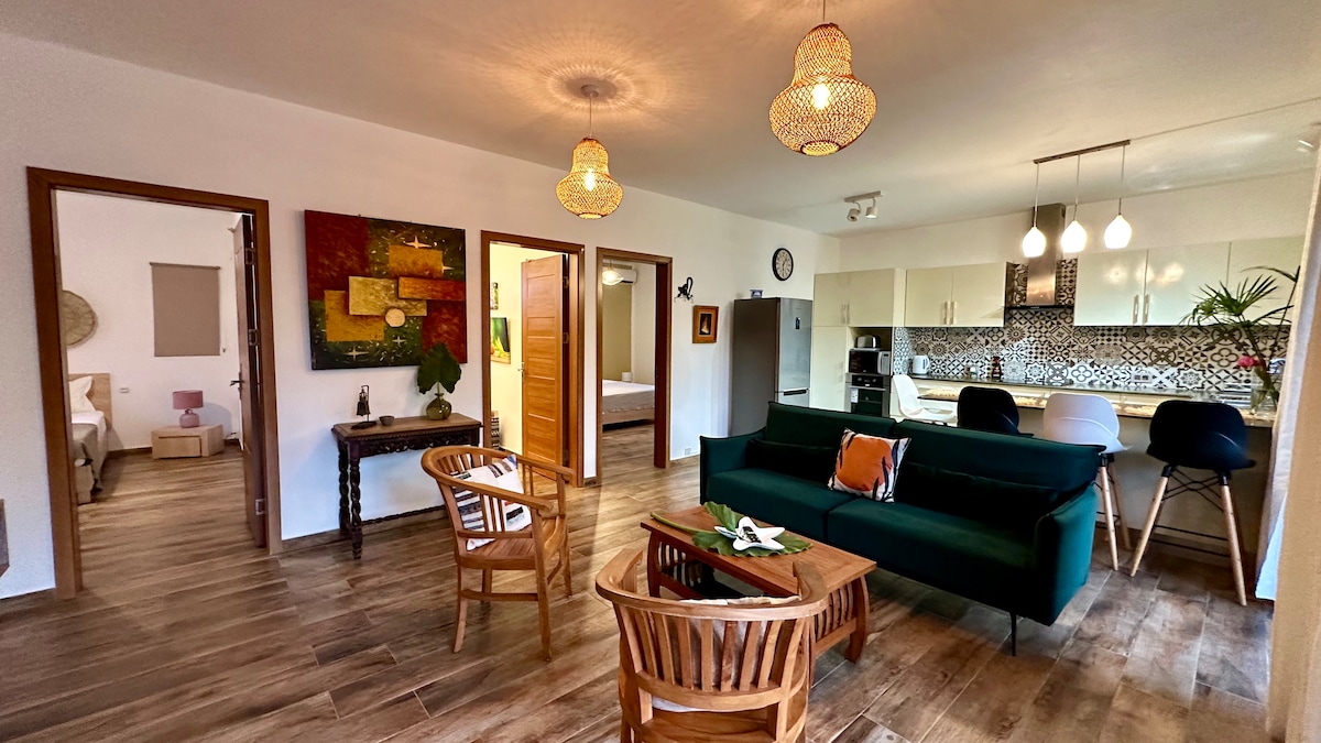 Bienvenue dans votre refuge tropical à Bain Bœuf, à 1 min de la plage et 5 min en voiture de Grand Baie. Situé dans une résidence paisible, ce bungalow allie confort, intimité et charme mauricien. Profitez d’une piscine privée, d’un jardin luxuriant et d’un intérieur bien équipé avec Wi-Fi haut débit, climatisation et linge haut de gamme. Le ménage est inclus, pour un séjour confortable. Détendez-vous et explorez le meilleur de l’île Maurice !
