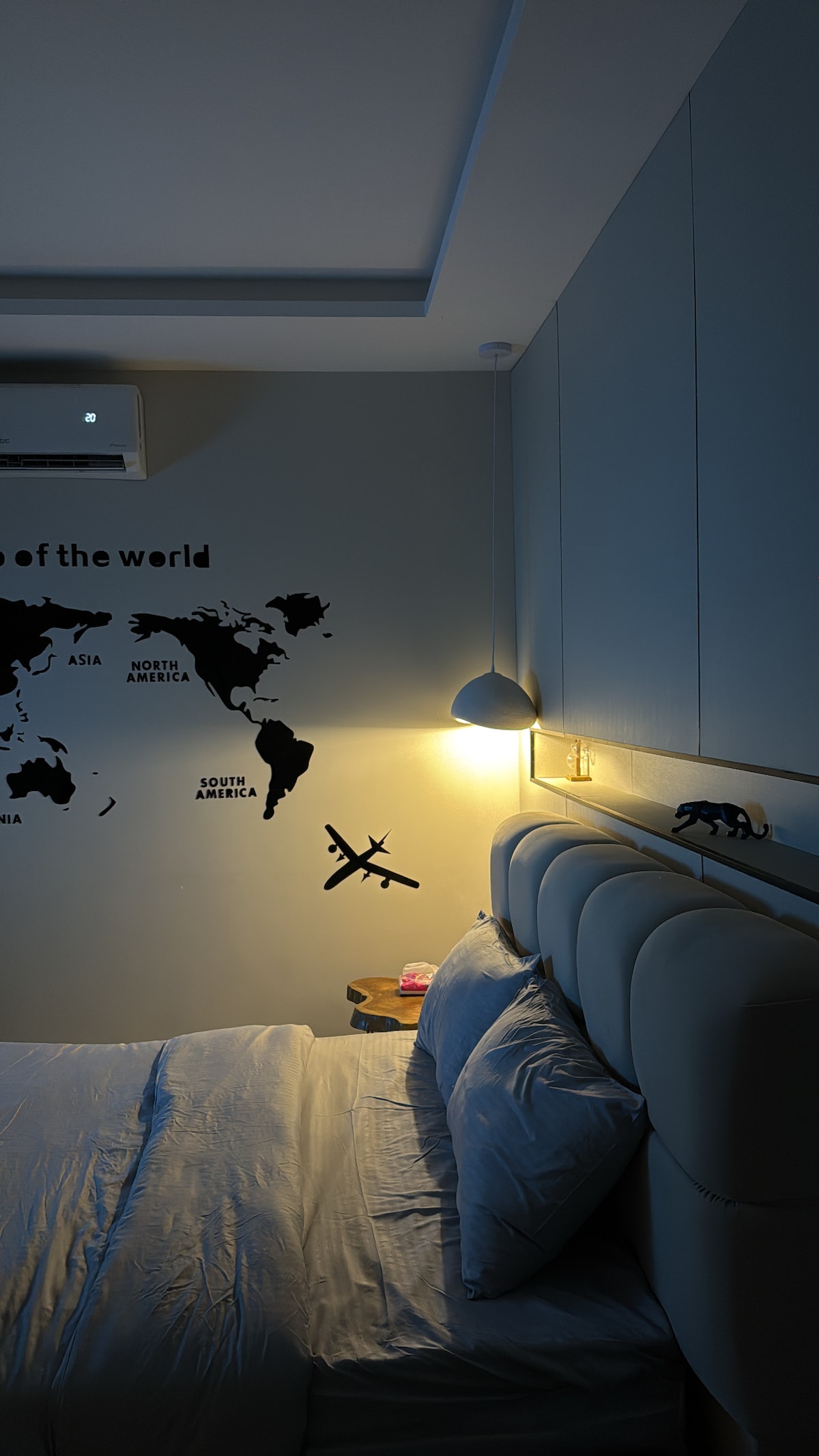 Your peaceful escape in the heart of the city. 🛏️ Relax in a comfortable bed after a long day. 🛋️ Enjoy a cozy sofa and warm lighting that create a calming vibe. ✨ Modern design with elegant details for a stylish stay. 🌆 Perfect for unwinding after exploring the city or for a peaceful getaway.