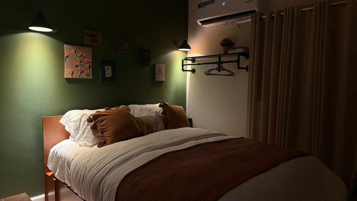 استديو بدخول ذاتي ومسافة ٦ دقائق عن برج المملكة وقريب من جميع الخدمات ويتميز بأجواء دافئة وأنيقة، غرفة بسرير ماستر مثالية للأفراد أو الأزواج الباحثين عن مساحة معيشة مريحة ومناسبة. تحتوي على : انترنت وكاوية ملابس وموقد الكتروني أدوات طبخ مدفأة ملاحظة : لا يوجد موقف خاص