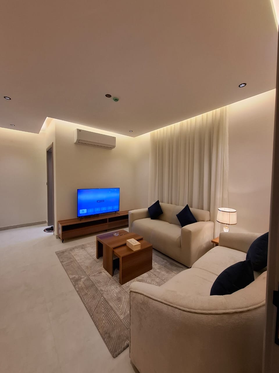 Experience a unique experience in a private 1BR offering relaxation and comfort. The apartment includes a bed and a living area where you can enjoy watching on a 65-inch smart screen. There's also a separate kitchen and a coffee to serve all your needs. location is close to all services, the tourist destination, and Riyadh Season areas (Boulevard City World, Kingdom Dome Arena, and other theaters) within a 5-minute. We would love to host you and share the experience with us!