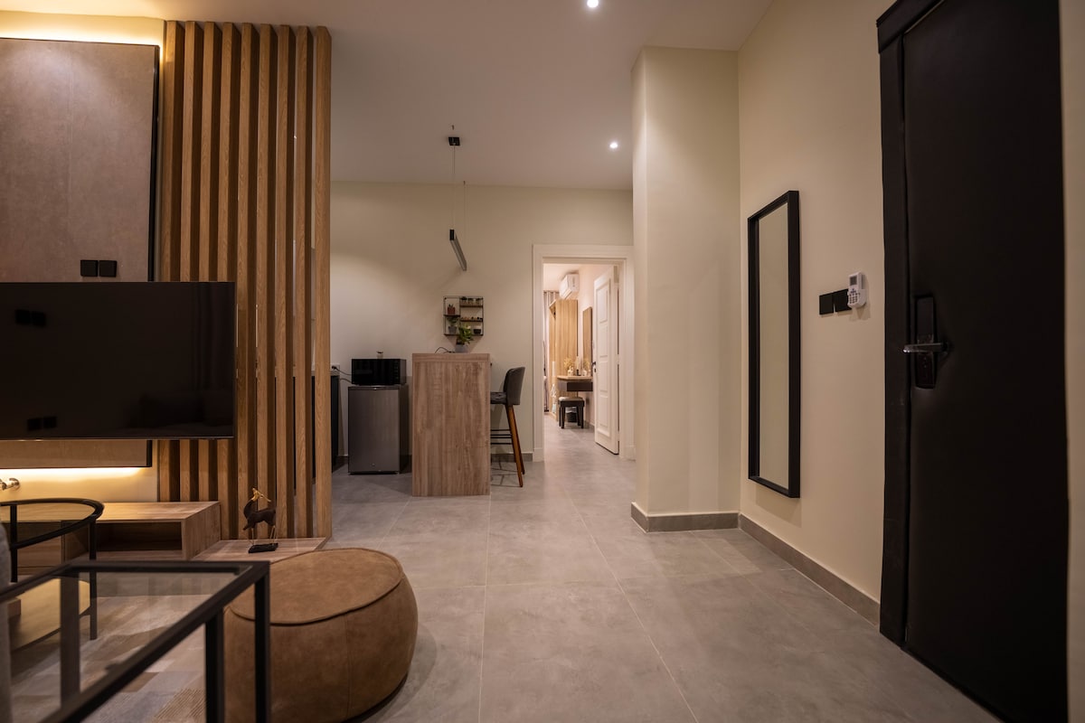 شقة فاخرة في شمال الرياض ومصممة لتكون مختلفة و أنيقة بحديقة خارجية ، تتمتع بخصوصية تامة ودخول ذاتي . موقع استراتيجي 📍 تقع على بعد : 15 دقيقة بالسيارة من موسم الرياض.🌟 10 دقائق من الرياض بارك. 🛍️ 13 دقيقة من مركز الملك عبد الله المالي. 🏙️ 18 دقيقة من مطار الملك خالد الدولي.🛫 تتكون من غرفة وصالة ومطبخ أمريكي وحديقة خارجية خاصة.