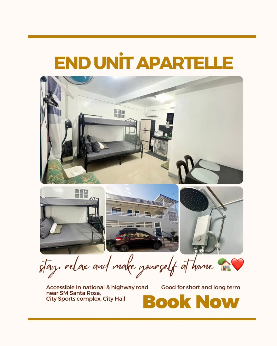 Situated on the 3rd floor of an apartment building, enjoy your stay here with your friends and dine outside the patio! What we have: -AC -Unlimited WIFI -Bingewatch all night as we have NETFLIX -Kitchen with single Induction stove + complete utensils -Refrigerator What we don't have: -Water heater -Projector (the one in the photo) is owned by the previous tenant -Parking area (but there's limited street parking for motors)