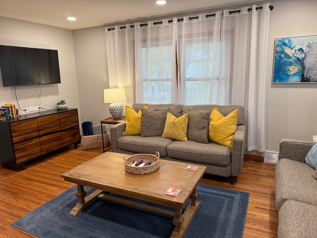 Nestled in a serene corner, this home offers a perfect blend of tranquility and accessibility; being near the Mayo campus and Rochester's key attractions. Enjoy comfortable beds, a well-appointed kitchen, and a fenced yard with patio gardens. It's an excellent spot for family bonding, featuring three smart TVs, rapid Wi-Fi, and a variety of indoor and outdoor entertainment options. We strive to accommodate flexible check-in/check-out arrangements whenever feasible. Rollator accessible.