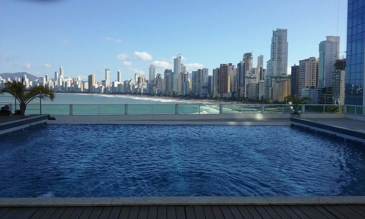 Ideal para namorar! Kitnet com vista para o mar, morro e big wheel. Não tem janelas de outras edificações para o frente. Vista maravilhosa pra orla de BC Confortável e aconchegante! Split A/C quente/frio. Piscina, Jacuzzi, Academia e Garagem. Pequeno mas totalmente confortável. Bem conectado: ônibus locais param no frente. Cafeteria e pizzaria, loja de convencias e lavanderia auto serviço 24 hs dentro do predio . Kiosque de aluguel.