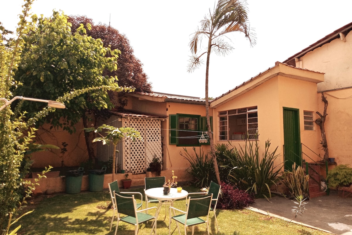 Small chalet in Italian style tiny villa/condo. 250mts Sumaré subway/green line. High speed Wi-fi. Living room+ open kitchen with frost-free duplex refrigerator/stove+oven/microwave. Private balcony with panoramic views. Double bed bedroom + small office with pull-out bed. Spacious bathroom with large windows. Washer machine. Shared outdoor garden. Weekly cleaning with change of sheets. Staircase to access the garden where the house is located. Park for free in front of property.