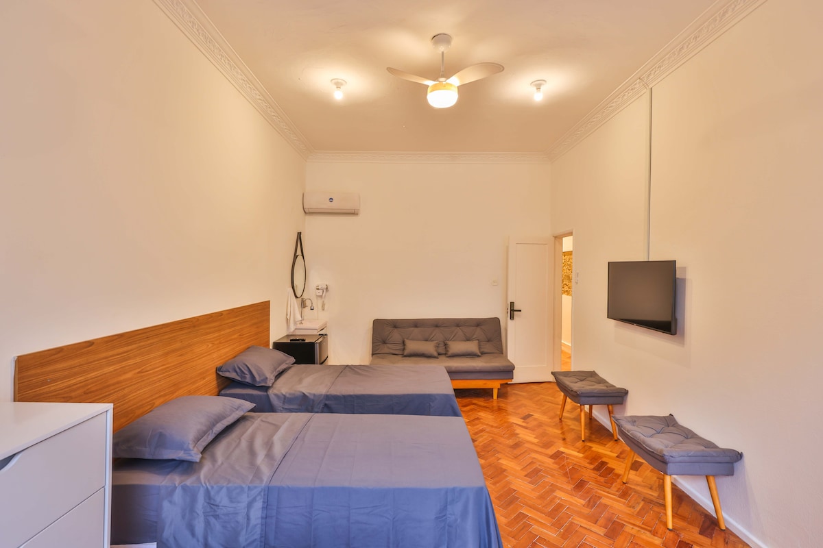 A house in the forest, surrounded by nature, with a sea view and sunrise view. Safe neighborhood in front of the Sheraton Hotel, just a 5-minute walk from the beach. Close to Leblon, São Conrado, and Ipanema. This is one of Rio’s most unique homes: monkeys jumping through the trees, toucans visiting, and at night you fall asleep to the sound of the ocean. Private entrance• Exclusive rooftop terrace• Private bathroom• Air conditioning• Queen-size bed• Mini-fridge in the room• Parking• Free coffee