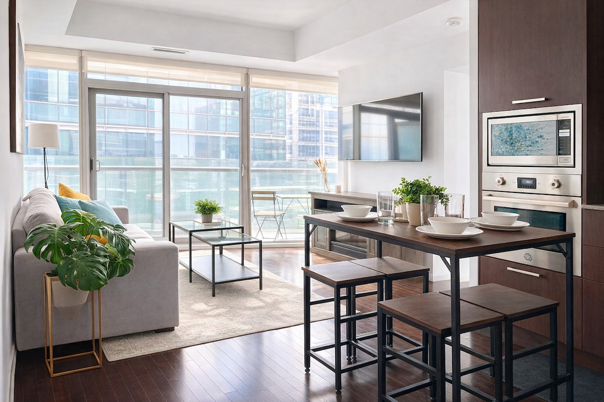 Stay in the heart of downtown Toronto in this modern one-bedroom condo just steps from the CN Tower, Rogers Centre, and the waterfront. The unit features a comfortable queen bed in the bedroom and a sofa bed in the living room, perfect for couples or small groups. Enjoy skyline views through floor-to-ceiling windows or relax on the private balcony. The condo includes a full kitchen, smart TV, high-speed Wi-Fi, and in-suite washer and dryer. Guests also have access to a gym and outdoor pool .
