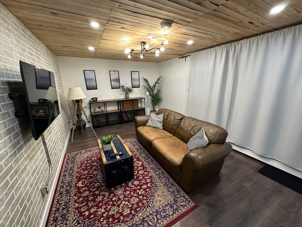 Stay downtown in a modern river valley retreat that is surrounded by natural beauty while being centrally located in Edmonton. One bedroom suite includes a kitchen, bathroom with walk-in shower and a living-room with a gas fireplace and pull out couch for additional guests. The building's main floor contains Dogpatch bistro and Bread+Butter bakery who will bring up a couple treats in the morning. Need more space? Check out River Valley Co. Suite 99 on AirBnB.