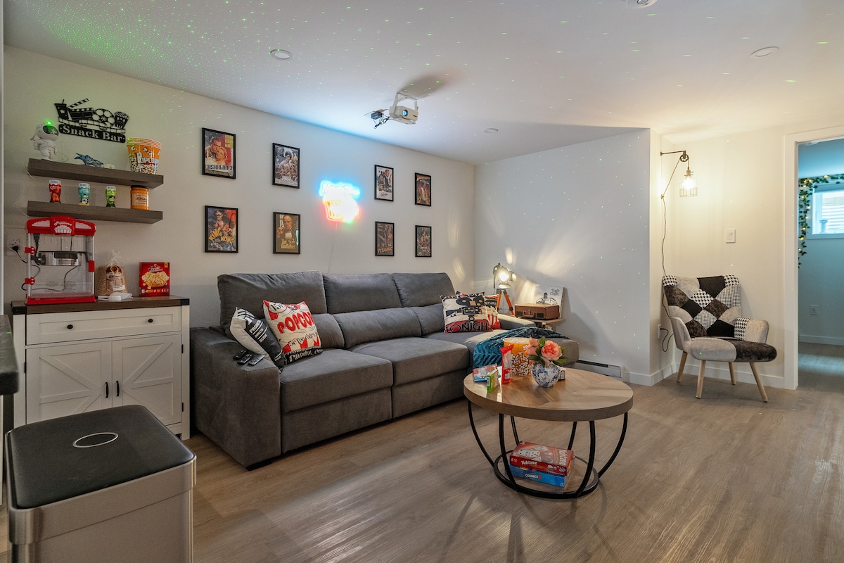 Welcome to this thoughtfully modeled unique entertainment themed basement suite located just minutes from the heart of Edmonton’s downtown. While this suite gives you the home away from home feel, it is perfect for letting loose and having some fun. It’s location is ideal for getting to many popular destinations throughout the city within minutes, such as a 5 minute drive to Rogers Place Ice District, 12 minutes to Whyte Avenue, and many more of Edmonton’s top rated attractions.