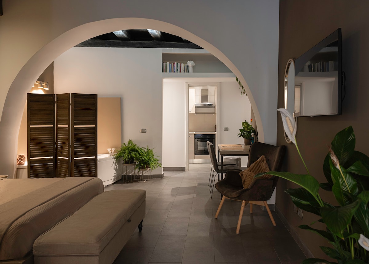 This one of a kind rustic yet elegant loft is full with details in wood, metal and stone, all handmade by Giulio, his owner. The fabulous terrace will take your breath away. How about some coffee with your slippers on while contemplating the Colosseum or watching the sun go down behind the Vatican shadow from the hut tub? Located minutes away from Termini Station but still a peaceful home. The access to the appartment is made by stairs. Breakfast it's on us!