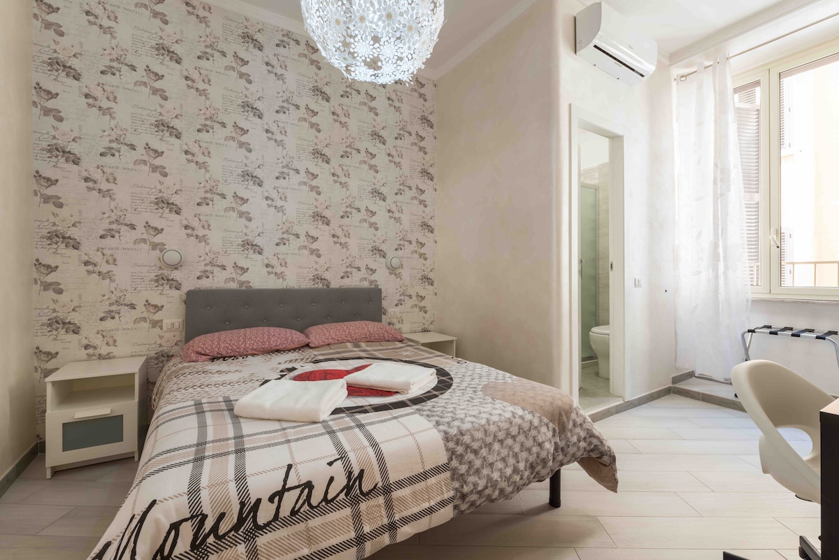 Posizionato nel centro della città, a un passo dalla stazione Termini, le 2 stanze matrimoniali ciascuna con bagno esclusivo, rappresentano una base ideale per un piacevole soggiorno turistico o per brevi periodi di lavoro, con tutti i più importanti siti di interesse storico e culturale e i luoghi di incontro più frequentati per la vita sociale e notturna a portata di mano.Appena ristrutturato, la particolare attenzione al design e all'arredamento rende questo appartamento unico nel suo genere