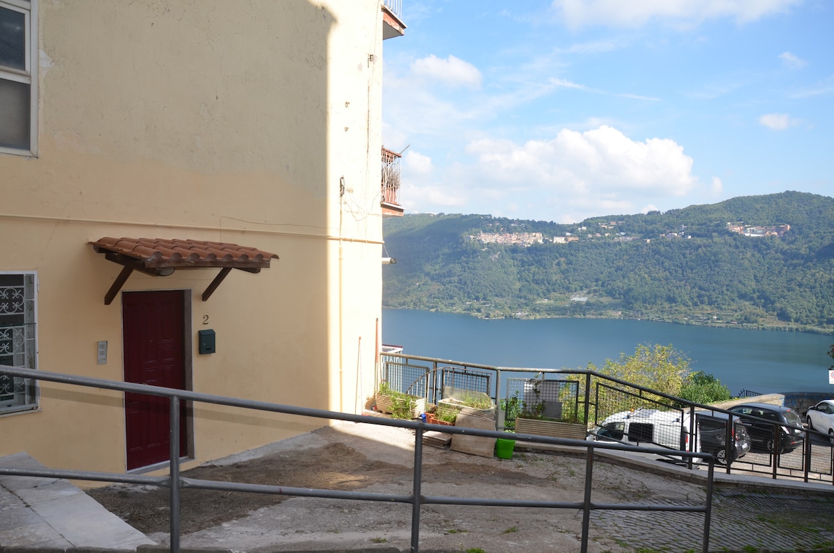 Bright flat, named CINQUEGATTI, with breath-taking views over Rome and Castel Gandolfo. The flat is located in a 19th century villa with a panoramic terrace. It is divided on 2 floors. On 2nd floor:one double-bed room, living room with large sofa-bed, dining room with additional sofa bed, two bathrooms, live-in kitchen. On 3rd floor: large panoramic terrace with views over Rome and the lake; access to small kitchen, single bed and bathroom. Cats and little and medium dogs are allowed.