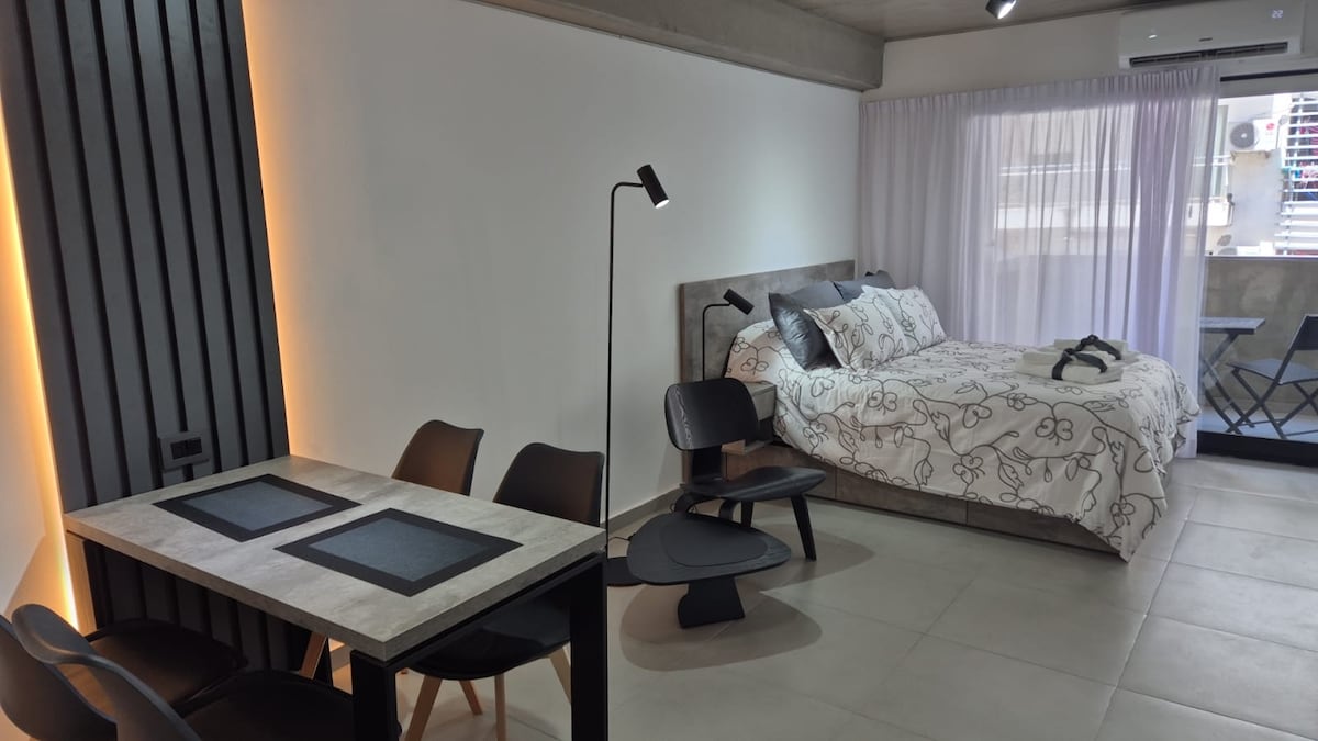 Despertá en pleno casco histórico, a pasos del Monumento a la Bandera y del río Paraná. Este moderno y luminoso departamento ofrece la combinación ideal entre ubicación, comodidad y tranquilidad para disfrutar Rosario como un local. Con 33 m² cuidadosamente diseñados, es perfecto para viajes de descanso, trabajo o escapadas en pareja. El espacio cuenta con aire acondicionado frío/calor, Smart TV y WiFi rápido, todo preparado para que tu estadía sea cómoda desde el primer momento.