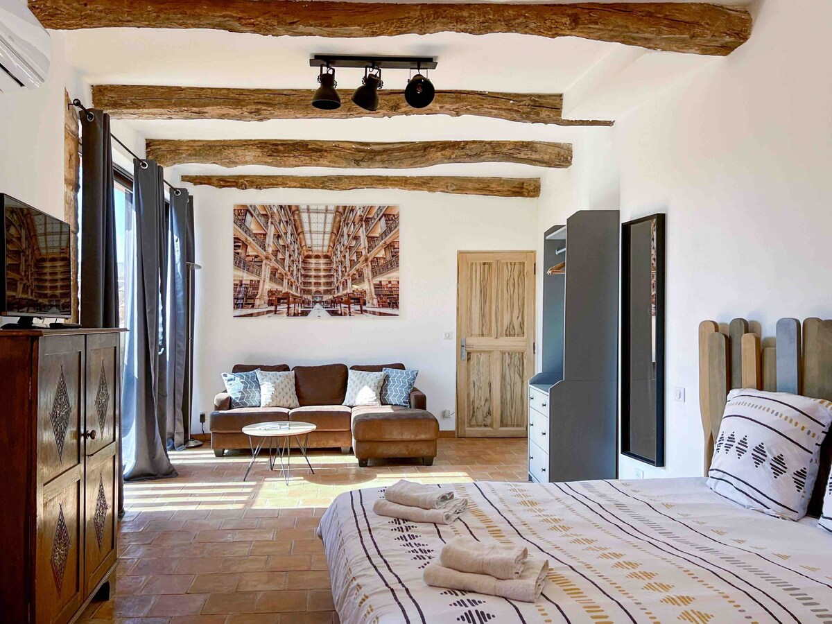 Au cœur du Luberon, dans un immeuble du 18ème, face à la cathédrale Sainte-Anne, un ancien séchoir rénové avec goût, qui vous offre une vue unique sur les toits de la ville jusqu’au Mourre Nègre et quelques villages du Luberon In the heart of the Luberon, in an 18th century building facing St-Anne Cathedral, a former drying house tastefully renovated and decorated, offering a unique view on the roofs of the city as far as the Mourre Nègre and some villages of the Luberon