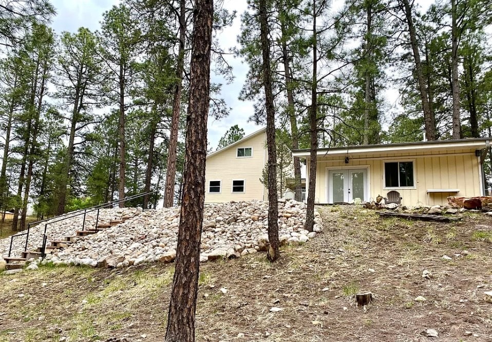 This cozy cabin is perched calmly among the tall pines and is perfect to accommodate up to 4 guests. Featuring one bedroom, one bathroom, living room, dining area, full kitchen, desk, new hot tub, and deck; it is ideal for those that want to unwind and enjoy what Ruidoso has to offer. It is situated in a quiet neighborhood that is a brief 10-minute stroll down the hill to Midtown, the village center for shopping and restaurants. The cabin is 37 min drive to Ski Apache, 10 min drive to casinos.