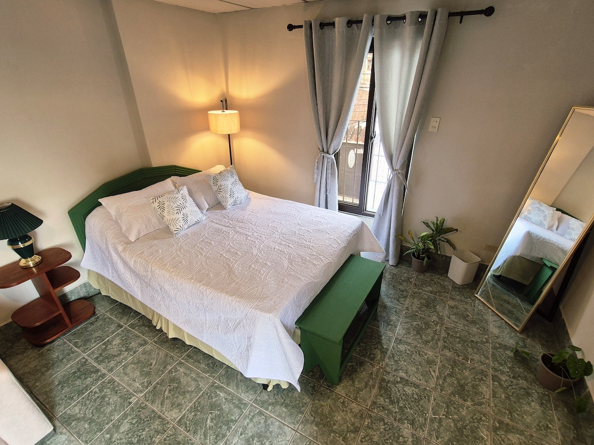 宽敞舒适的房间,配有加大双人床,位于米拉弗洛雷斯区