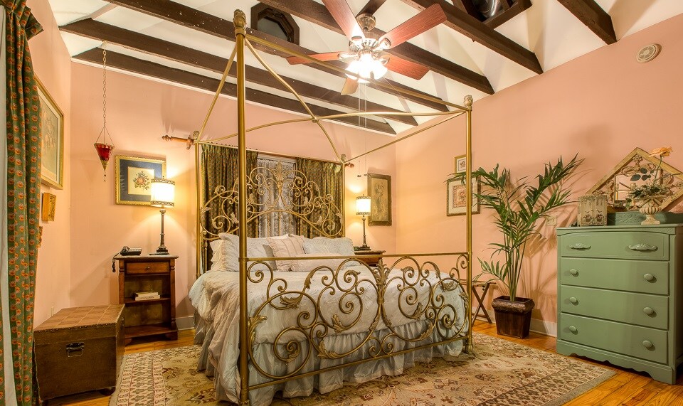 Our cottage is nestled behind Oviedo’s oldest home. The cottage boasts lots of windows with a beautiful view of the outdoors. Inside the cottage is a queen-size bed, table for 2-4, kitchenette with refrigerator, toaster and microwave, TV with Netflix and Prime, plus WiFi. There is a tall claw foot tub which can be difficult for people with mobility issues. The cottage is connected to the main house but has its own entrance and guests have complete privacy. There are no shared spaces.