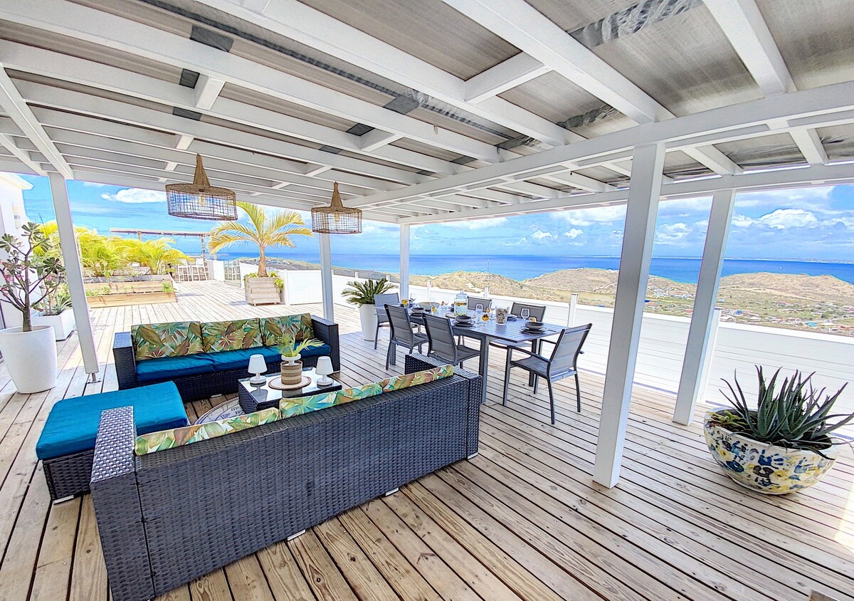 BRAND NEW CONDO in a quiet gated community! "Sunrise Over St. Barths" is an oasis of luxury and elegance, built into the hillside overlooking the Atlantic Ocean and St Barth. Enjoy the sunrise every morning in this modern property consisting of 2 master bedrooms with 2 bathrooms, living room with fully equipped kitchen, exterior terrace and laundry area. Each bedroom and the living room have unobstructed panoramic views of the ocean. A breathtaking infinity pool and a sundeck overlook the ocean.