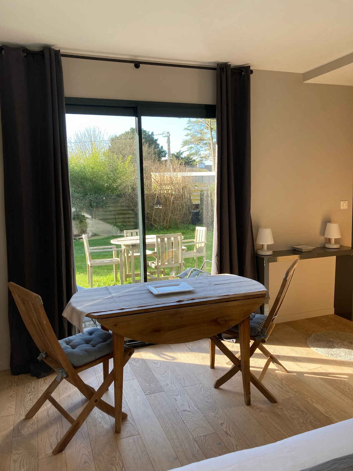 Quartier calme, à proximité commerce ( 1km) et plage (3 km) Dépendance neuve cocooning(27 m2) avec accès privée. Composée d'une chambre (lit 160*190) TV, salle d'eau avec WC, et coin repas (réfrigérateur-congélateur, évier, four multifonctions, plaque induction à l'exterieur, machine à café dolce gusto etc...) jardin piscine parking, wifi .