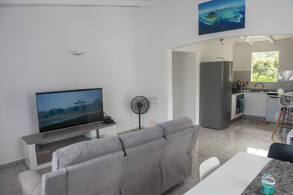 T2 paisible à la campagne. Proche des commodités. À 7km de l'aéroport. 1 salon avec canapé convertible. 1 cuisine équipée. 1 coin repas. 1 chambre climatisée avec placard. 1 salle d'eau. 1 espace détente tranquille qui permettra de prendre le petit-déjeuner ou encore de faire un barbecue. Possibilité d'accueillir 2 personnes supplémentaires: 7 euros par personne/ par nuit