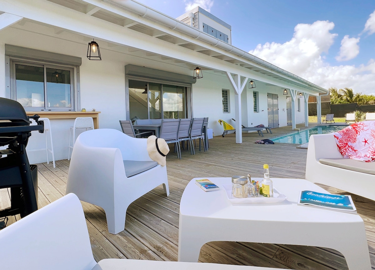 Idéalement situé entre St François et St Anne (Anse à la Barque), ce meublé de tourisme classé 4 étoiles se situe à 10 mn à pied de la plage, 5 mn des commerces en voiture, 10 mn du Golf, de la Marina. Villa récente (Juillet 2022) ouverte sur la Forêt, le jardin et la piscine. Carbet et Beach Bed pour profiter sans craindre le soleil. Cuisine très bien équipée. Plancha et barbecue à l'extérieur. Pour préserver le calme du lieu et respecter le voisinage, les fêtes ne sont pas admises.