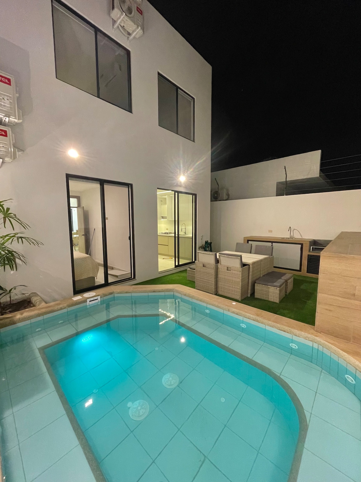 Hospédate en nuestra casa exclusiva con piscina privada 🏡💦, ubicada a 1 minuto en carro del Malecón de Salinas 🚗 y a solo 4 cuadras caminando 🚶♂️. Cerca de bancos 🏦, restaurantes 🍽️ y atractivos turísticos 🌴✨. Ofrecemos todas las comodidades para que disfrutes de una estadía cómoda, tranquila y muy segura 🔐😌. Ideal para estancias cortas o largas, totalmente equipada con todo lo que necesitas para sentirte como en casa 🧳🏠.