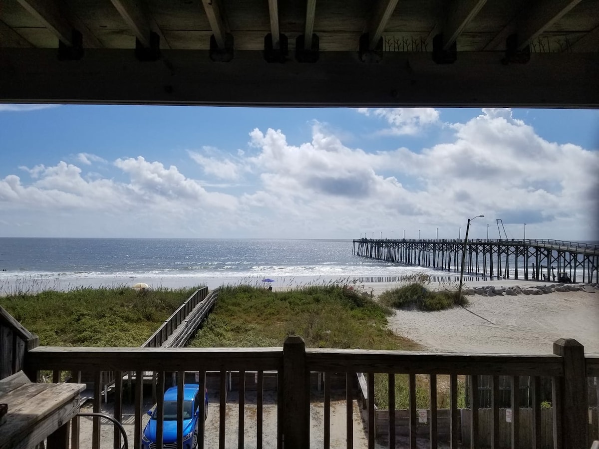 Enjoy the Carolina Coast, hear the waves, feel the sun on your face, and soak it all in at this top floor flat with ocean views. Steps away from the North Pier, High Tide Lounge and Tiki Bar, Freeman Park, and great coffee at the North End Café. Relax with a glass of wine on the balcony as the sun goes down. The abundant wildlife and marsh views from the back balcony are stunning. Stroll along the beach or sun yourself by the pool and leave our quaint island home feeling refreshed.