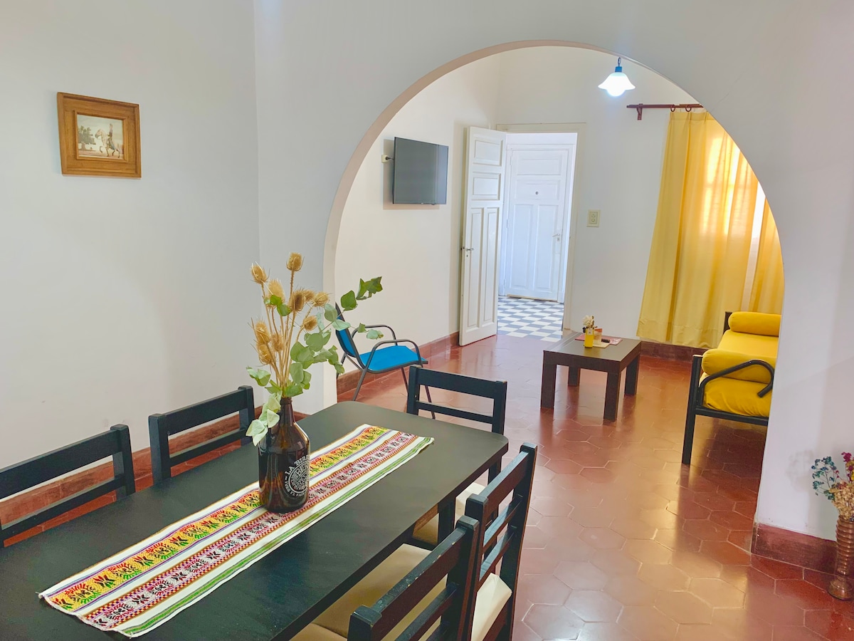 Si buscas estar cerca de todo, este alojamiento es para vos. A 3 cuadras de la plaza principal de la ciudad, se ubica nuestro dpto que consta de 1 dormitorio con cama matrimonial y la posibilidad de equipar en caso de que haya niños. La cocina esta equipada para preparar todo tipo de comida. Además vas a encontrar insumos para preparar tu desayuno.
