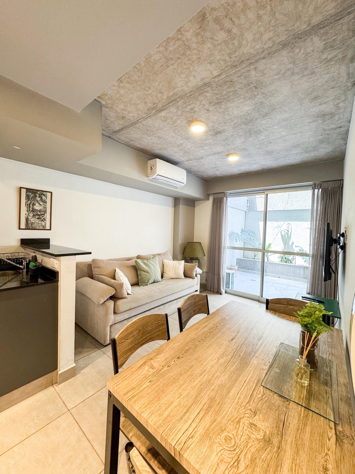 Este mono ambiente de categoría se encuentra en el centro de Salta, a pocas cuadras del Paseo Balcarce. Con un diseño moderno ofrece una sala con cocina y barra, una zona de descanso con cama queen-size y un baño moderno. Incluye servicios como wifi, aire acondicionado. Su ubicación privilegiada te sitúa cerca de restaurantes, bares y atracciones culturales. Es perfecto para una experiencia cómoda y auténtica en Salta.