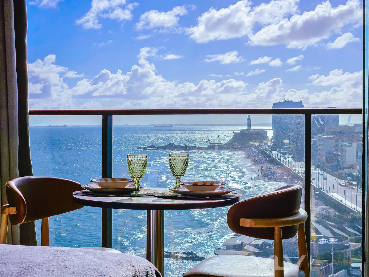Uma das mais deslumbrantes unidades do Spot Barra, acomoda até 2 pessoas com conforto. Com vista mar, sendo a melhor posição para o Carnaval e com uma excelente vista de toda a Avenida Oceânica até o Farol da Barra. Prédio moderno com piscina, academia, Seven Wonders Restaurante no térreo que serve um delicioso e disputado café da manhã (pago), minimercado, recepção 24h e arquitetura deslumbrante. Ideal para quem busca sofisticação, vista incrível e fácil acesso às melhores atrações de Salvador.