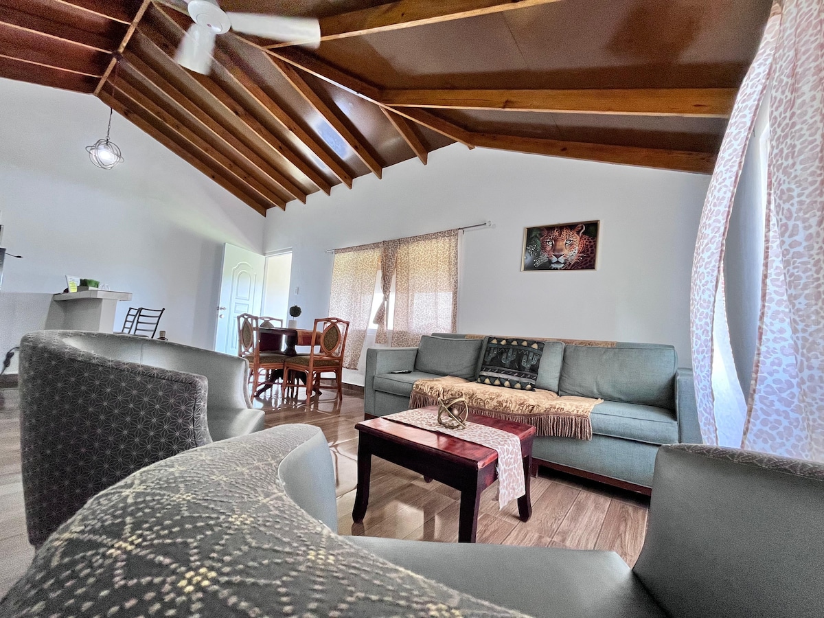 Independent bungalow/apartment full amenities in the Villa Serenidad’s tropical garden with private terrace, fast Starlink Wi-Fi and quiet area 5 min from Punta Popy Beach • 1 double bedroom • A/C & fan • Equipped kitchen • Private bathroom with hot shower • Private covered terrace with hammock • TV with Netflix included • Shared pool • Free private parking Ideal for couples, solo travelers or digital nomads seeking relax and privacy in nature.