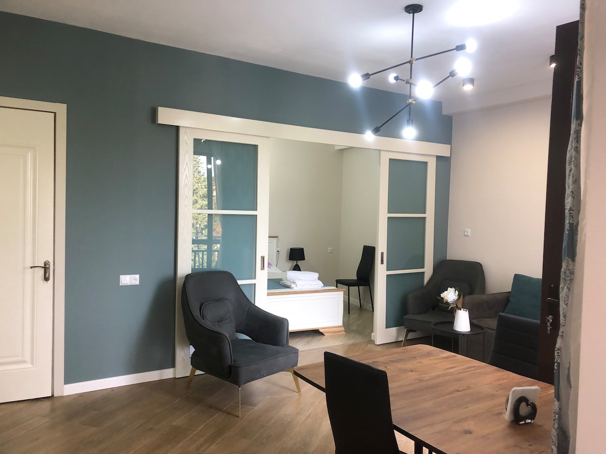 Enjoy a stylish stay in the heart of the city, 450 meters from the Colha Fountain in the city's central square. Here you will feel coziness and silence, luxury, comfort, warmth and convenience. Our apartment is located 100 meters from the house museum of the great Georgian composer, Zakharia Paliashvili.