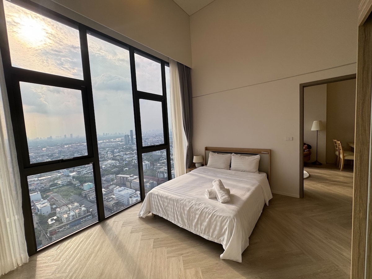 This Spacious unit on High floor with great city view. Well equiped kitchen, living area, work desk and king size bed. Nice shower with hot water. Lovely balcony with great light of the city. Nice open plan unit , very spacious, great for a long stay.