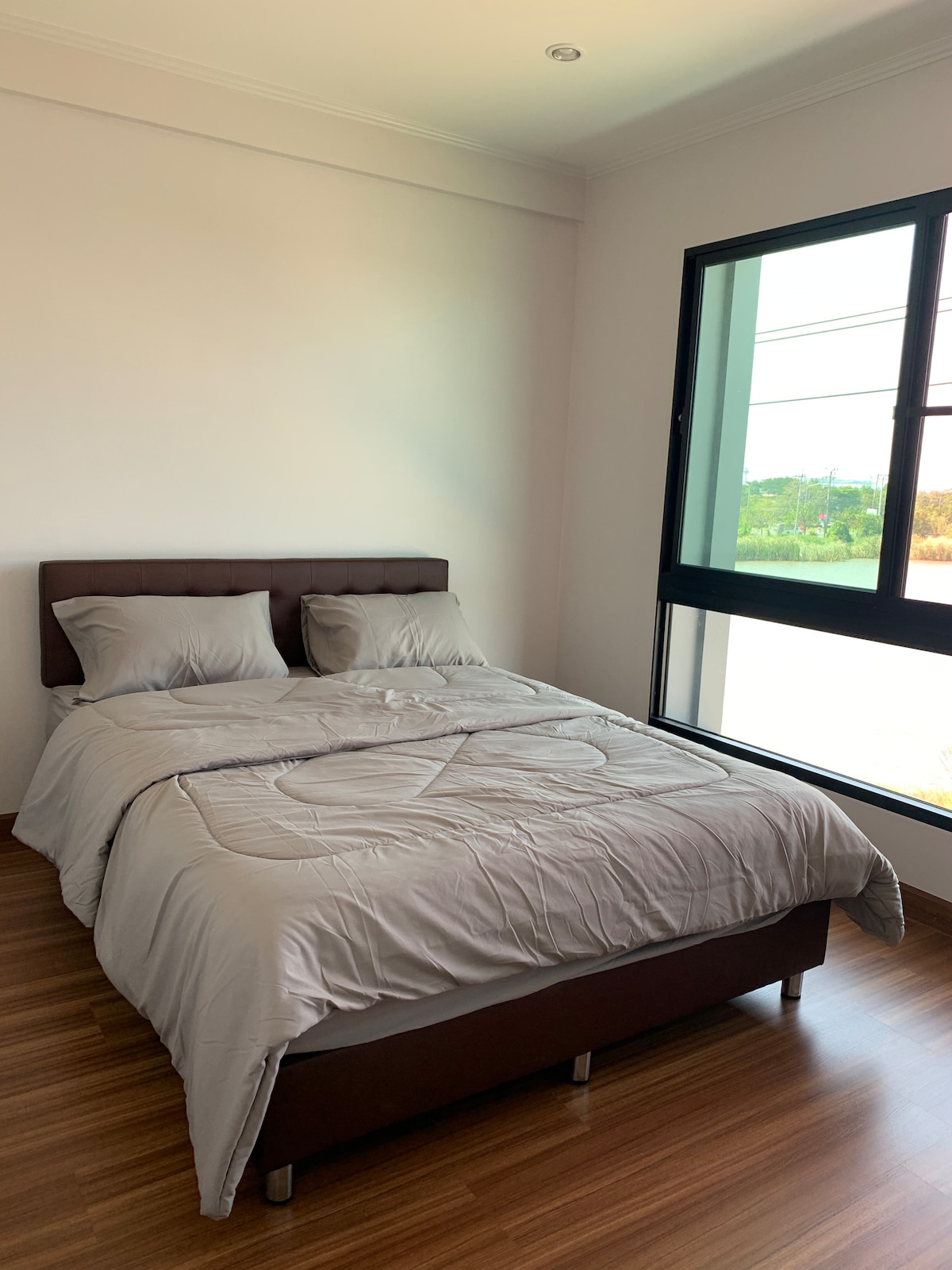 Villaggio 3 is a private residence. Suitable for family and friends, there are 3 bedrooms, 4 beds, 3 bathrooms, kitchen, dining room, living room with complete amenities. Garden in front of the house, parking and security guards. The project is surrounded by nature, clean, peaceful, has camping, fitness, swimming pool and playground. Convenient transportation, only 30 minutes from Suvarnabhumi Airport, 15 minutes from motorway and expressway, 10 minutes from Mega Bangna, 20 min from BTS station.
