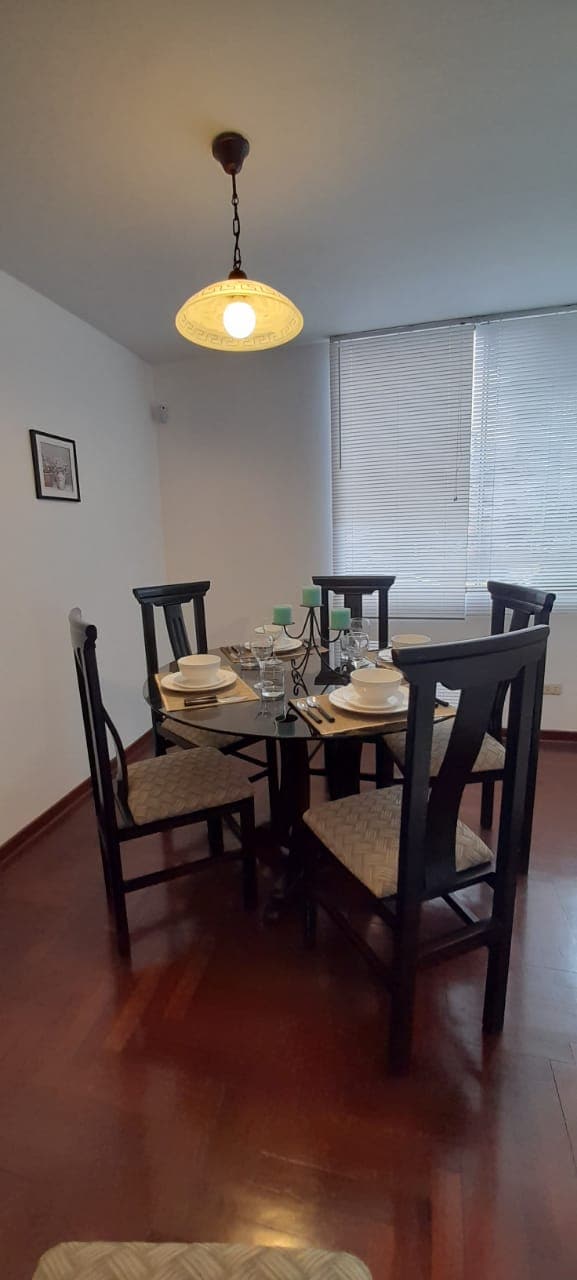Hermoso duplex ubicado en el primer piso. Cuenta con una una linda sala-comedor. La cocina con barra, refrigeradora, microondas, cocina con 4 hornillas, cafetera, vajilla y reposteros. Además de patio y baño de visita. El segundo piso tiene dos habitaciones con camas Matrimoniales, una cama de 1 plaza adicional y un baño con terma electrica 50L. Ubicado, cerca al CC. El Polo, Mercado 28 y la Embajada de Estados Unidos. Cuenta con variedad de restaurantes, bancos, clínicas, farmacias, etc.