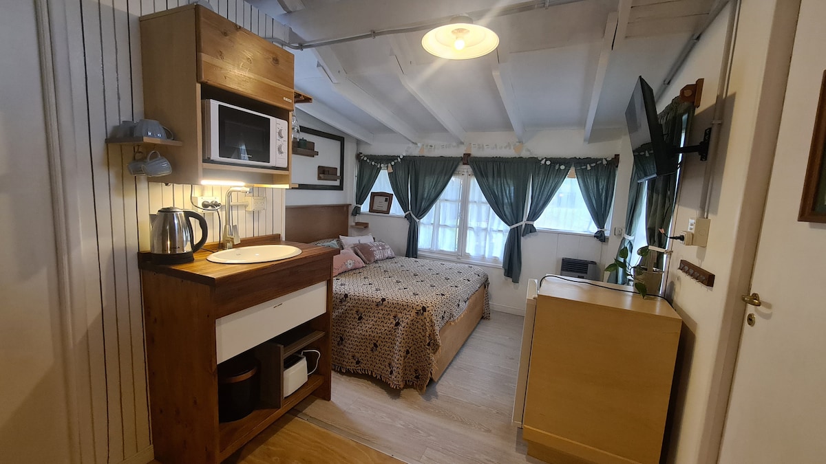 Modern house by a meltwater stream in a peaceful natural setting. Just 15 min from Cerro Catedral, 25min from downtown and walking distance to Lake Gutiérrez beaches. Perfect for relaxing or working remotely: 200 mb fiber optic WiFi, mezzanine with 2 desks, private deck with grill. One bedroom with queen bed, full kitchen, modern bathroom, central heating with radiators. Paved road access ensures year-round accessibility. Large parking area. Pet friendly. Comfort, nature, and great location.