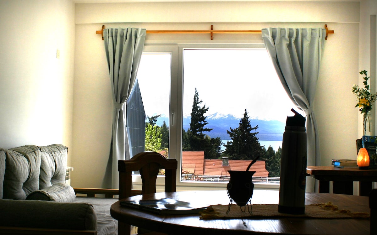 Take it easy at this unique and tranquil getaway located on Nahuel Huapi Lake. Listen to the peaceful lake sounds while falling asleep. Imagine drinking your morning coffee overlooking the lake. ¿Would you like to take a swim? The apt has its own private access to the beach. ¿Would you like to go out? Located only a few blocks from the Bariloche center, you can walk to the best bars and restaurants in town.