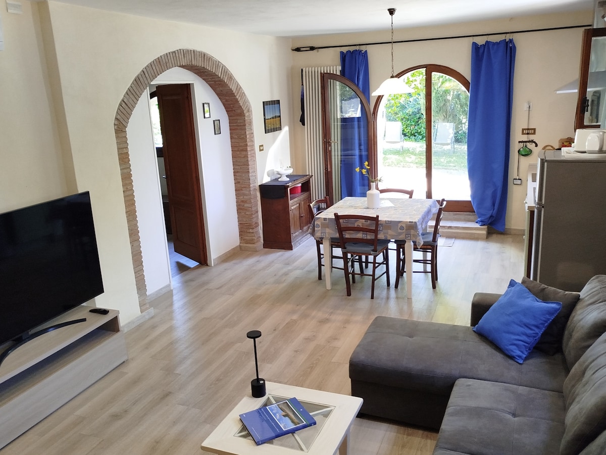 Accogliente appartamento per 4 persone arredato in stile toscano e con travi a vista immerso tra le dolci colline della campagna toscana. A disposizione degli ospiti giardino attrezzato,wi-fi gratuita,piscina condivisa attrezzata,forno a legna e barbecue,lavatrice. L'appartamento è stato ricavato da una graziosa casa colonica in pietra del 1800 recentemente ristrutturata secondo la tradizione toscana e suddivisa in tre comodi appartamenti