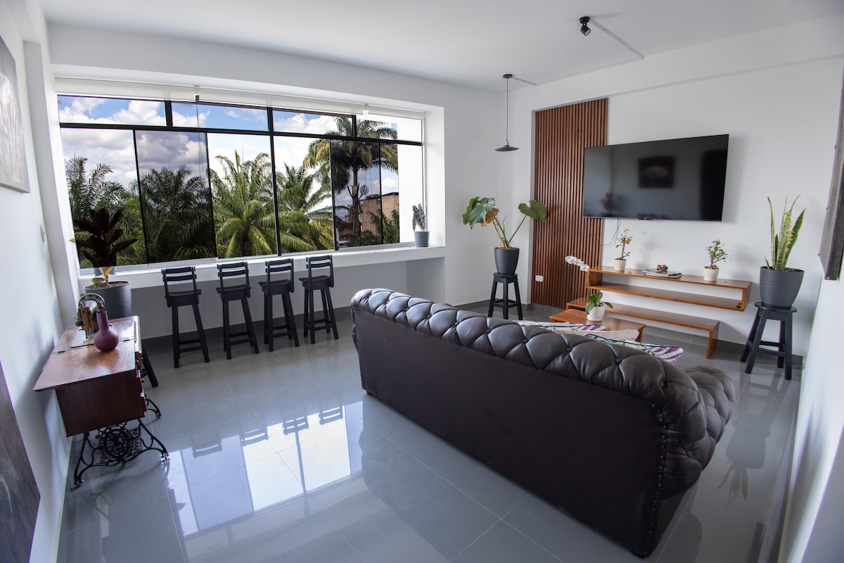 Departamento exclusivo de estreno con vista panorámica totalmente implementado para una estadía llena de confort y lujo. Se encuentra a solo 3 cuadras de la plaza central, cerca de restaurantes y todo tipo de negocios. Tendrás todo a tu alcance en una zona 100% segura. Contamos con AIRE ACONDICIONADO para que el calor de la ciudad no te sofoque y con una gran velocidad de internet para que siempre estés conectado.