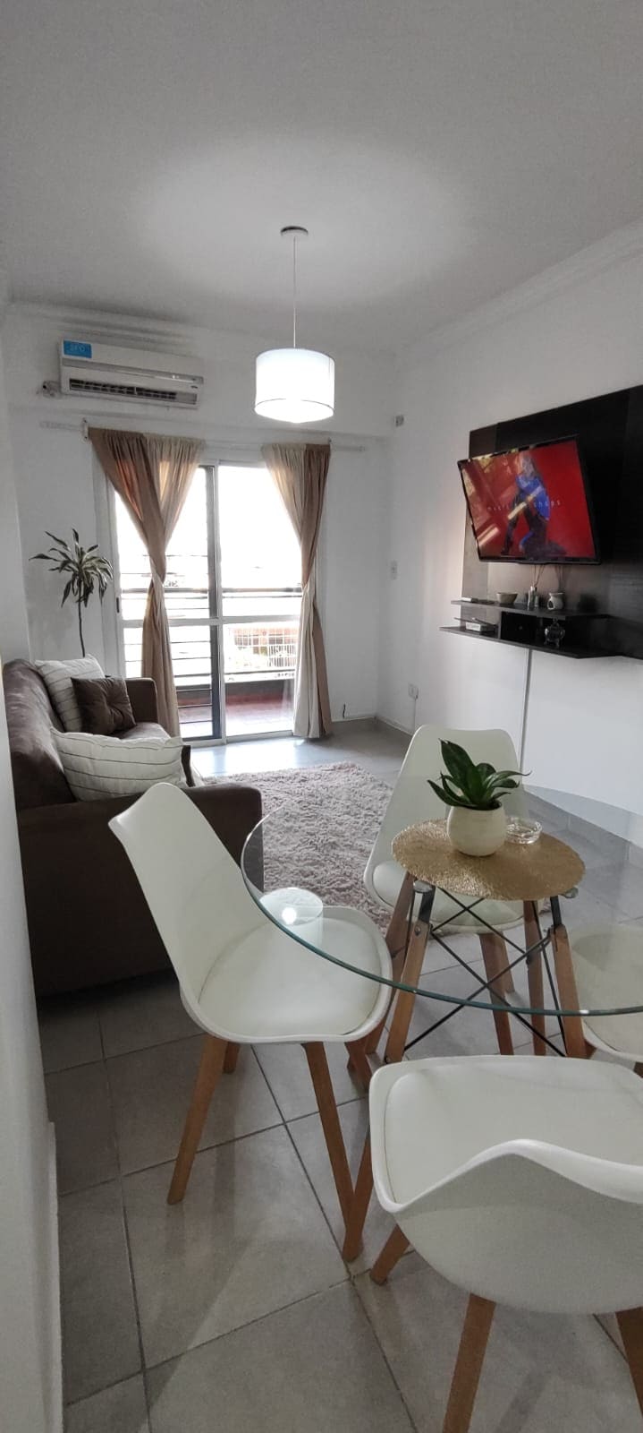 Amplio departamento a estrenar, completamente equipado, aire acondicionado (frio calor), smart TV 4k, cortinas black-out, somier de 2 plazas, sofa cama para 2 personas, Wifi, jabon, toallas, shampoo, vajilla completa. Salón de usos múltiples (con reserva segun disponibilidad) y pileta. Excelente ubicación, cerca de los principales puntos de interés (Plaza Independencia, Casa Histórica, Catedral). Zona segura en la que se puede encontrar transporte publico, panaderías, despensas, bares, etc