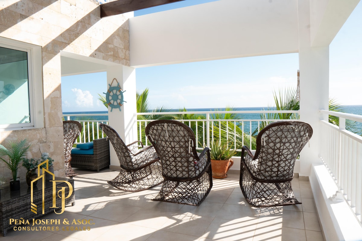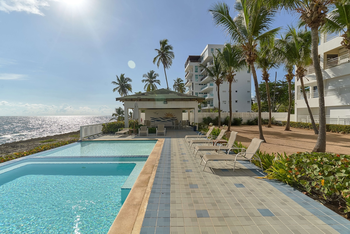Relax in this luxury apartment nautical themed, recently and fully renovated with 300 Mb Wi-Fi, first line to a private beach and a stunning sea view. Enjoy the sunset on the terrace, overlooking the paradisaical private beach and the warm Caribbean sea; or take pleasure with the condominium services as swimming pool, Jacuzzi gym, restaurant, private security, reception... **The apartment is disinfected before and after each reservation with suitable products, and we also make available to the client hydro-alcoholic gel and a disinfecting spray. A pocos metros del condominio tienes una gran variedad de restaurantes, pubs y un minimarket con servicio a domicilio. En la zona también hay peluquerías, un banco, farmacias, un centro médico y, a solo 40 minutos en automóvil, Santo Domingo.